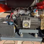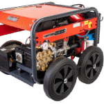 Urządzenie zostało wyposażone w trzycylindrową pompę tłokową rzędową z ceramicznymi nurnikami, która gwarantuje wysoką trwałość i stabilną pracę nawet przy długotrwałym użytkowaniu. Napęd stanowi czterosuwowy, dwucylindrowy silnik benzynowy z rozrusznikiem elektrycznym, połączony z pompą za pomocą przekładni redukcyjnej. Całość pracuje z prędkością 1420 obr./min, zapewniając optymalną wydajność i niezawodność.