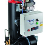 Kompaktowe urządzenie ze zintegrowanym pionowym palnikiem olejowym.